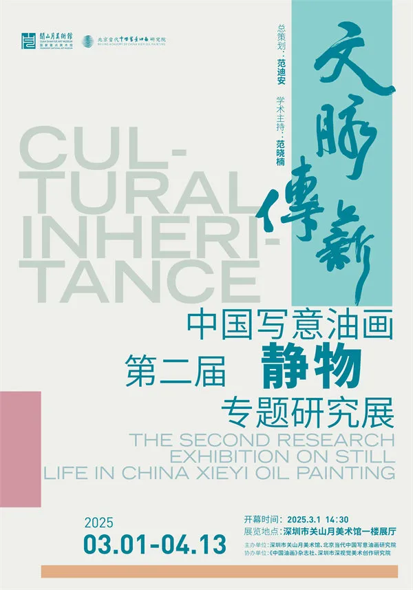 2025年3月1日至4月13日,“文脉传薪-中国写意油画第二届静物专题研究展”在深圳市关山月美术馆展出。“文脉传薪”是深圳市关山月美术馆重要的年度展览项目,在中国美术家协会主席范迪安先生的策划推动下,自2015年至今,与北京当代中国写意油画研究院共同成功举办了九届,在全国产生了重要影响。