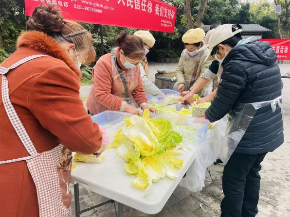 活动伊始,党群服务中心内便已热闹非凡。来自社区的十余位志愿者叔叔阿姨们早早来到现场,她们作为本次活动的"主力部队",带来了自家最拿手的手艺。活动现场,社区早已备齐了新鲜猪肉、白菜、韭菜等食材,叔叔阿姨们分工明确、配合默契,展现了令人赞叹的团队协作精神。