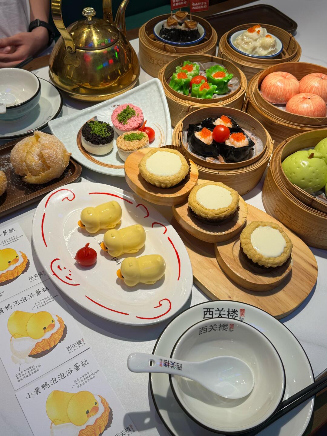 现在的茶点发展成这样了吗❓ 太可爱了吧!!!这谁能不心动啊💕 小黄鸭布丁🍮➕水牛奶蛋挞 把小黄鸭丢进蛋挞里,流出来的牛奶🥛 像极了小黄鸭在泡澡🫧太萌了吧! 平安包,苹果造型🍎内馅奶香十足👍 常青包,内馅很丰富,很满足哇~ 不得不夸下烧卖,jujuj香耶! 鲍鱼烧卖、鹌鹑蛋烧卖、翡翠烧卖 不仅颜值高,色彩丰富,而且吼吼吃,很新鲜 藏在桂城地铁站A口商场3楼,有窗边位 整洁亮堂,大圆桌,方桌卡座都有 很适合约会聚餐,家庭聚会,环境不错✨