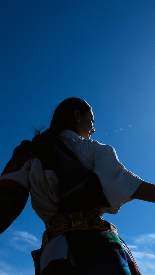 在书里看到一句话”尘世间的事物,有一些蓝的成分,就有了让人停驻一会的耐心。” 果然,我在旅行的时候,总是被蓝色的景色吸引。江河湖海,天空星河,无一不是把蓝色作为自己的底色。 在世界各地旅行的这五年,从赤道到极地,相机背后的双眼总是对蓝色特别敏感。 在世界屋脊喜马拉雅,神秘的高原,我被当地文化深深吸引,用胶片机记录下不可复制的瞬间。 沿途在灵芝的美景之中,我拍下了一路磕长头到拉萨的人们,他们眼里的光让我看到夜空中的星星。 在青海,格萨尔王的雕像在蓝调的夜空中随着烟花被点亮,人们聚集着庆祝节日。 在当地人悬挂的五色经幡里,蓝色代表天空,象征智慧与广阔无边。 那里的蓝,在我心中与众不同。自从我去过一次纳木措,就再也忘不了那幽深的蓝色。 在我喜欢的摄影师杜可风眼中,也是一样。今年,始祖鸟携手杜可风,循着青藏高原的融雪轨迹,以海拔4718米的纳木措为灵感,创作的影片“见水知蓝•纳木措”(图5-8)让我又想起了我高原旅行中遇到的蓝色。在影片中,纳木措永恒变幻的迷人蓝调,映射着与万物共生的在地文化。 在现代社会中,当我们越走越快时,总有一些民族依然坚持着与自然共生,而始祖鸟,表达的就是对在地文化的尊重和传承。 这让我重新找回作为一名摄影师的热情和初衷—不远万里跋涉到向往的地方,与那儿的人和风景融为一体,捕捉追求的瞬间,用影像传播在地文化…… 我想我会继续在路上,拿着我的相机,去记录下那些珍贵的文化。 人与自然的和谐共生,是我摄影永恒的主题。