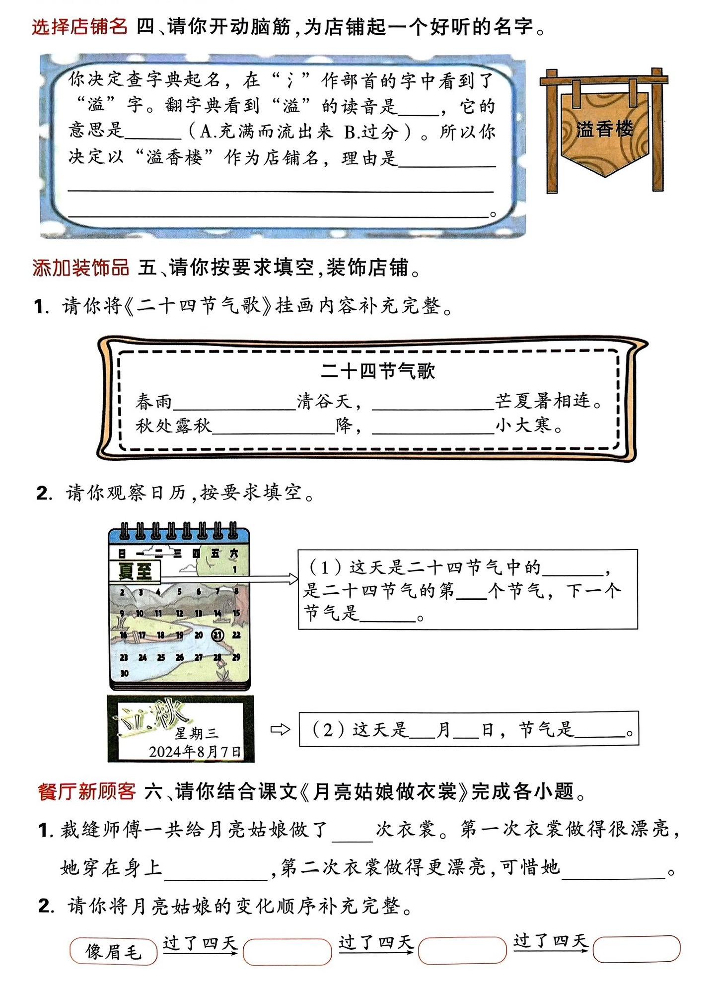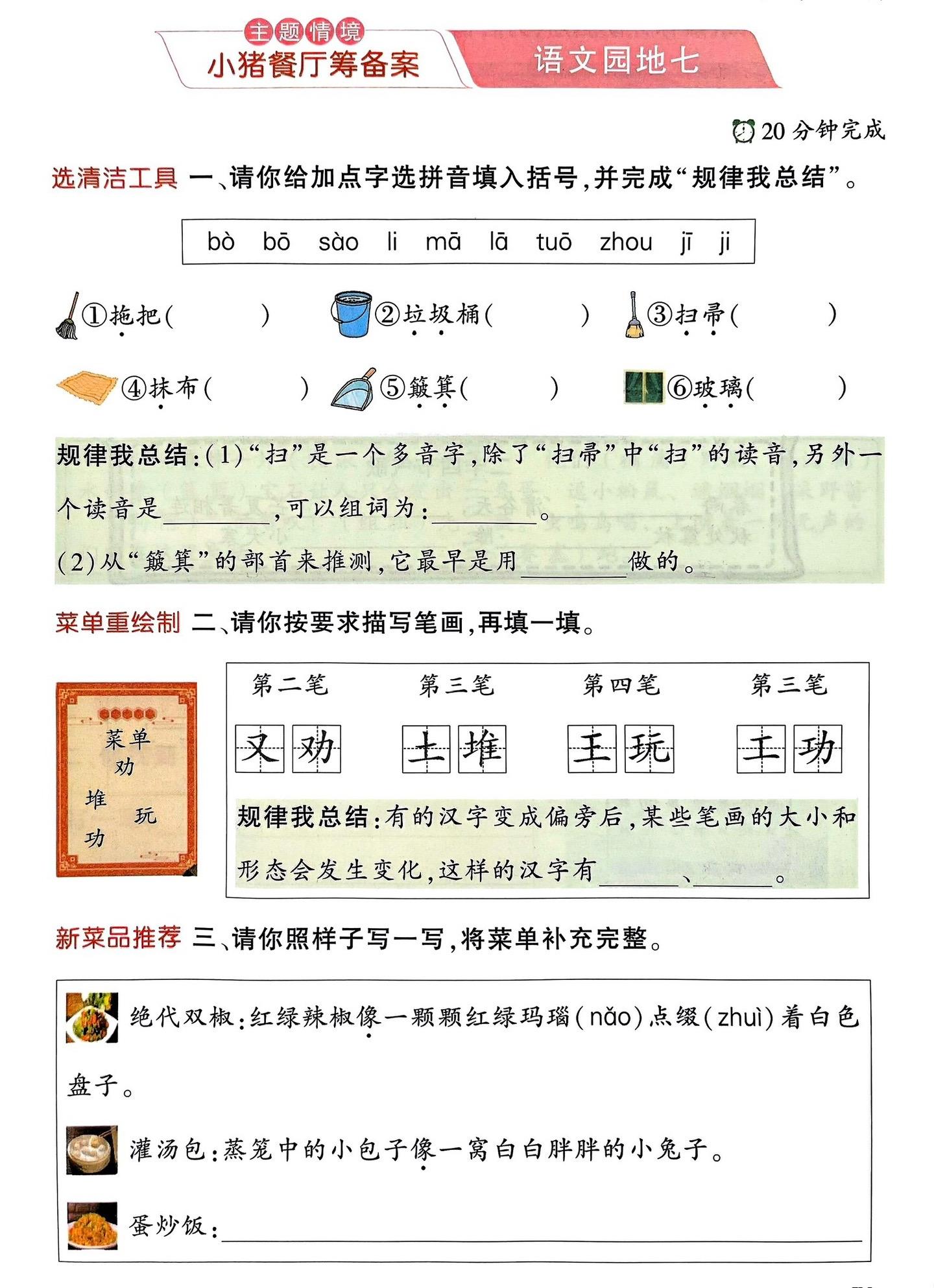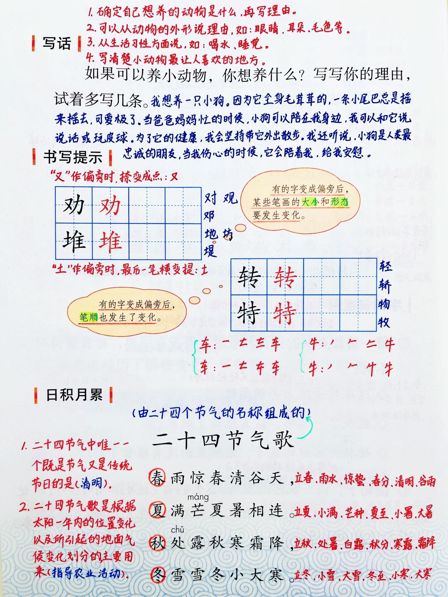 二年级下册《语文园地七》笔记。 写话: 我想养一只小猫...