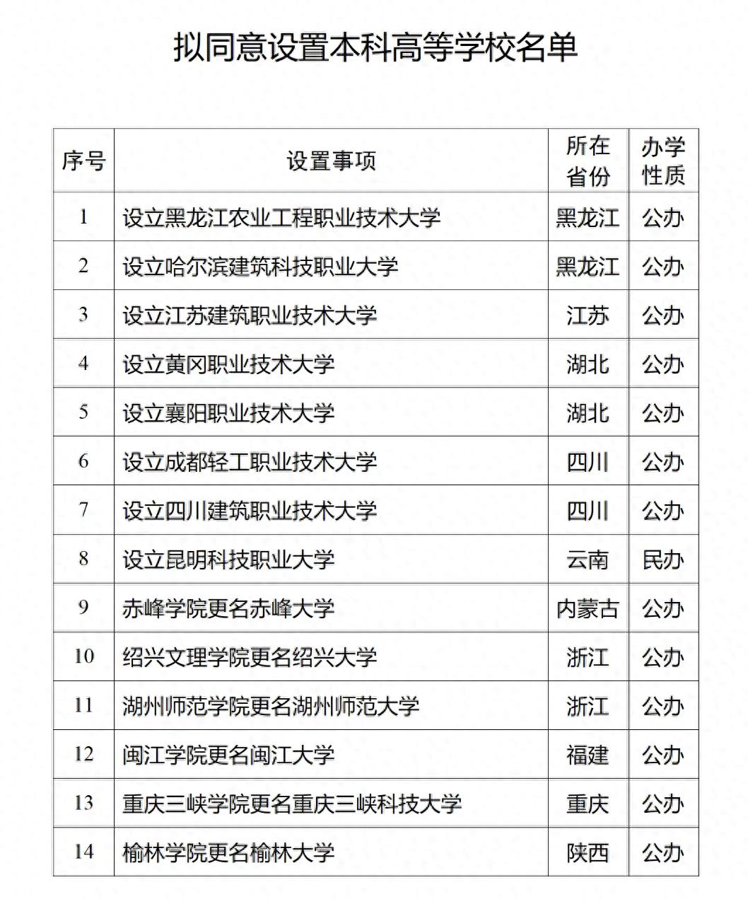 1月12日,教育部公布关于拟同意设置本科高等学校的公示,拟同意设置绍兴大学、闽江大学等14所高校,其中6所更名升大。