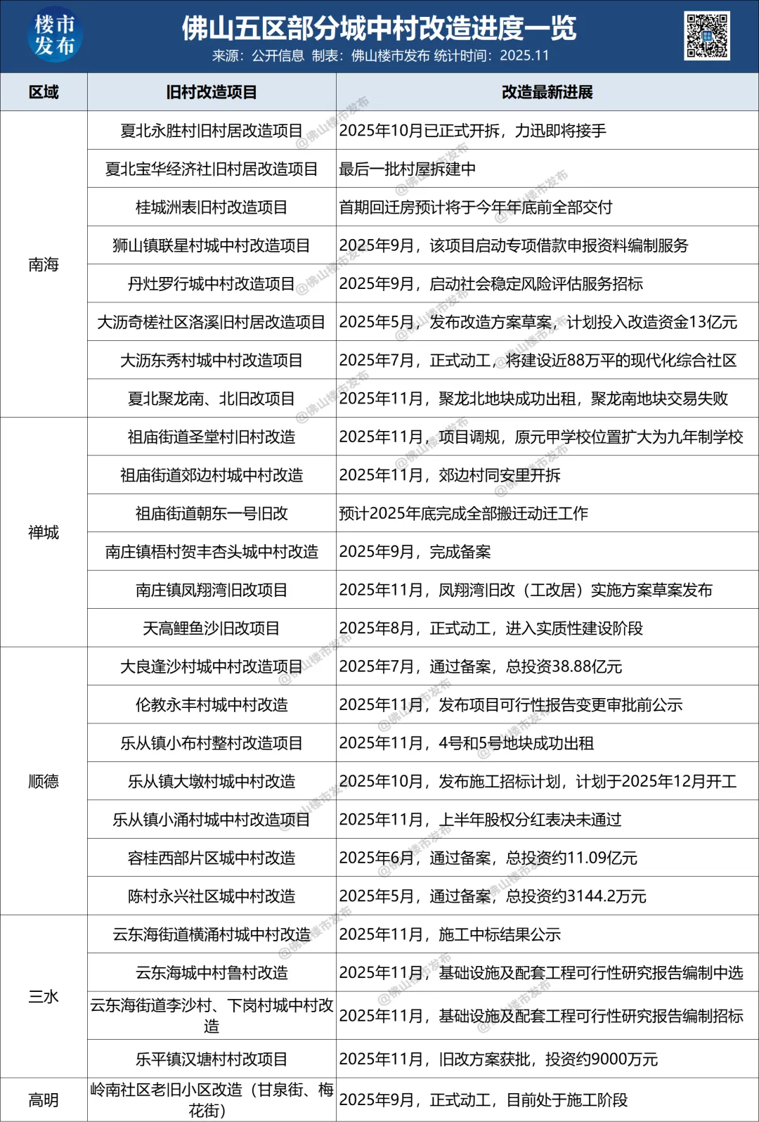 看到这里,楼市君想问,大家有没有发现,最近各区关于旧改的消息一茬接一茬,十分活跃。楼市君也就最近动作较为频繁的城中村梳理了一番,发现近几个月来佛山五区有超26个旧村改造有新进展。