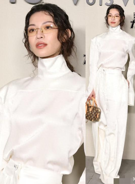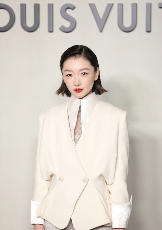 作为LV品牌大使的钟楚曦,选择了一身白色的套装。
