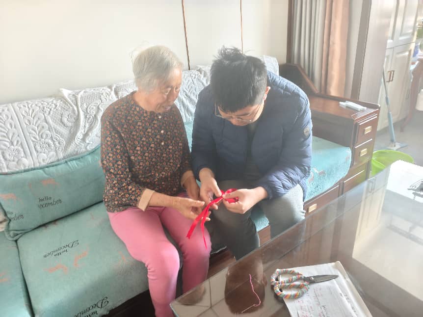 在快节奏的现代生活中,传统手工艺正逐渐淡出人们的日常,却承载着中华民族深厚的文化记忆与情感纽带。中国结作为非物质文化遗产之一,以其独特的编织技艺与吉祥寓意,深深扎根于民间,成为连接古今、传递美好的文化符号。为弘扬中华优秀传统文化,增强社区居民对非遗项目的认知与认同,1月21日,曲阜师范大学计算机学院“名城访非遗,孝心续传承”实践队在山东省青岛市高实景苑社区开展了一场以“中国结编织技艺”为主题的非遗传承志愿活动。
