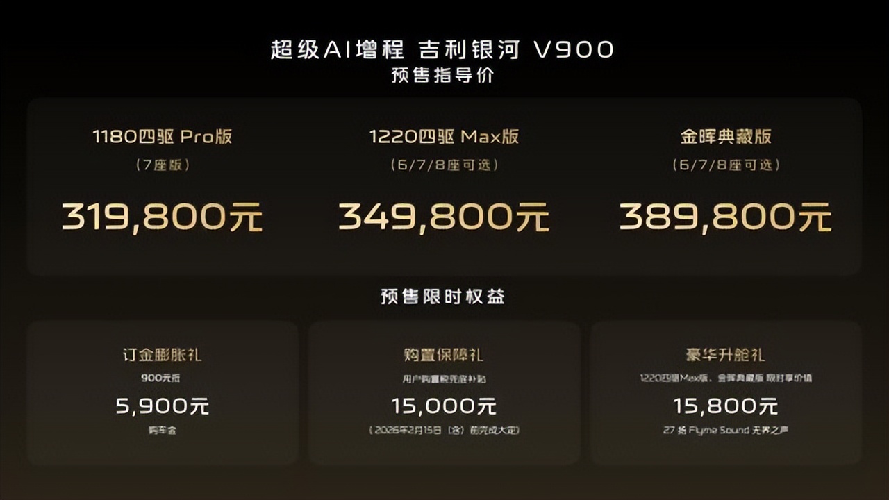 31.98万元起 超大尺寸 标配四驱 吉利银河V900开启预售