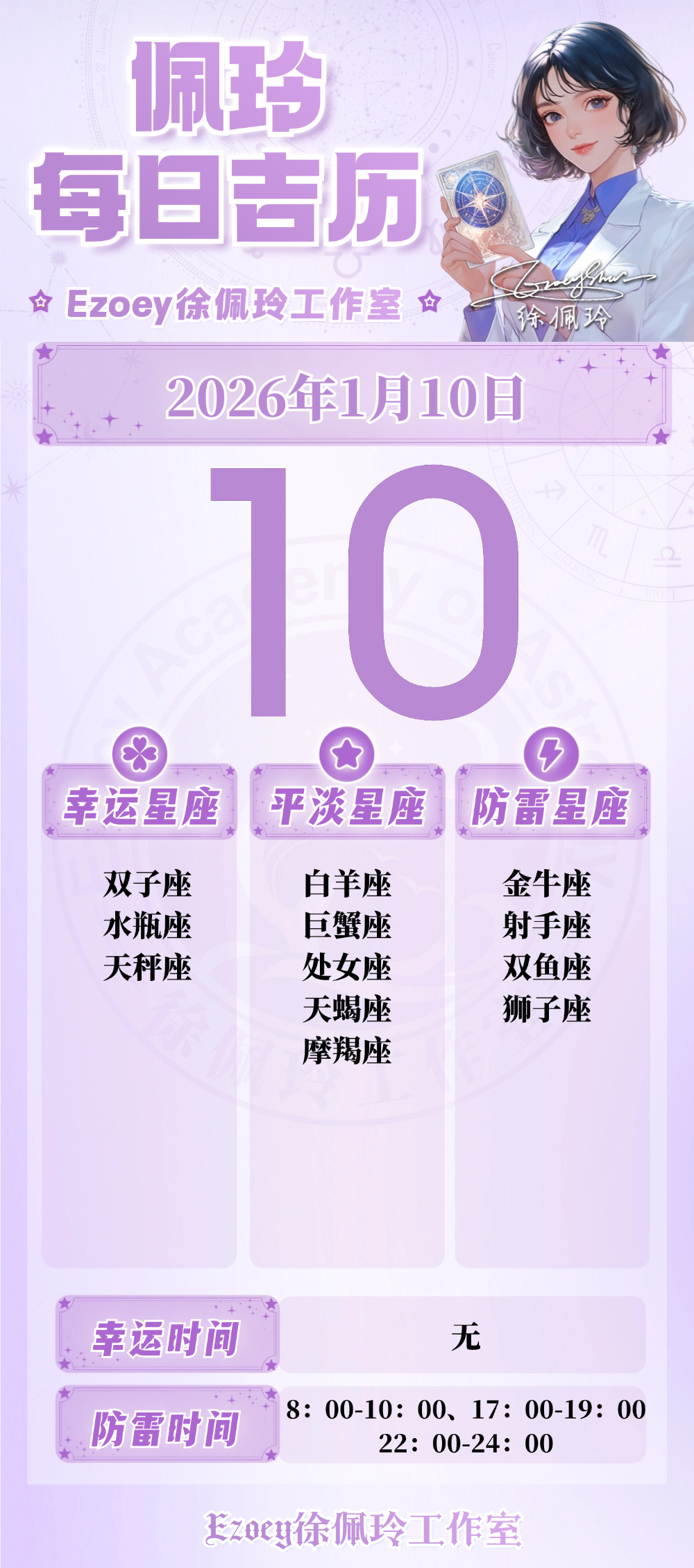【1.10日播报】轻度预警日 幸运星座:双子座、水瓶座、天秤座——Ezoey徐佩玲26年星座播报