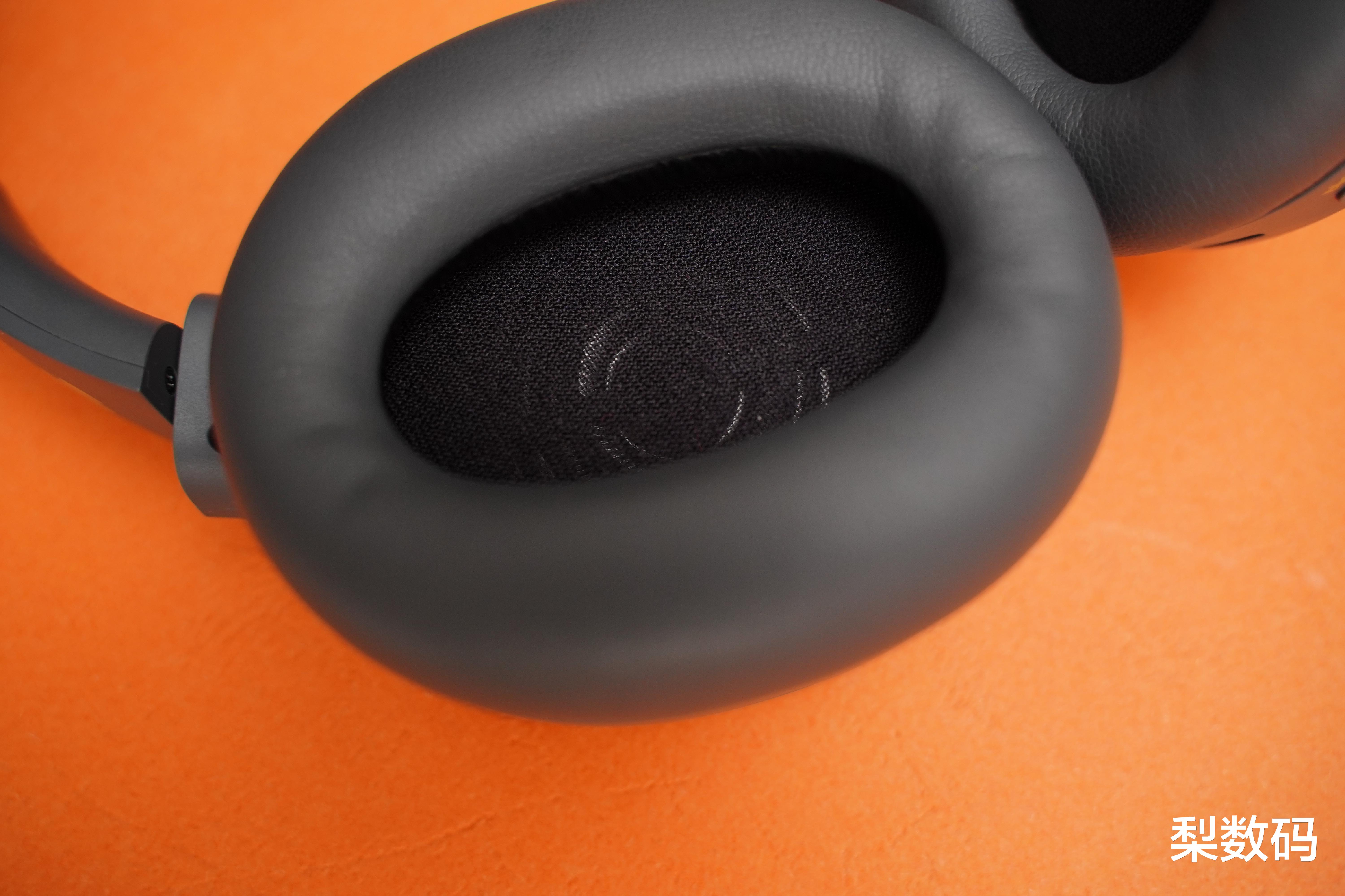 常说的人体工学设计,轻松舒适的佩戴感才是好设计。头梁部分填充的皮质材料,与耳罩的柔软质地相当,相呼应的米色带来高档的视觉感受,松软的填充材质减少了对耳朵的压迫感。同时,220g 的重量佩戴在头上很轻松地被忽略掉了。摇头晃脑的情况下耳机稳稳地护住耳朵,夹脑袋、夹头发的情况基本没有发生。
