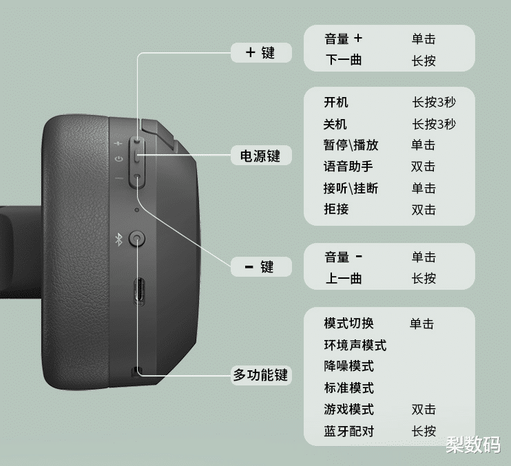 主要的功能按键都集中在右侧耳罩尾部,四颗按键实现了多种模式/功能的切换,需要花上一定的学习成本,使用的最多的莫过于切曲/音量调整以及降噪模式切换。按键的回弹力度清脆,有段落感,同时按键有不同的凸起或凹陷的标识,盲操有效避免误触。