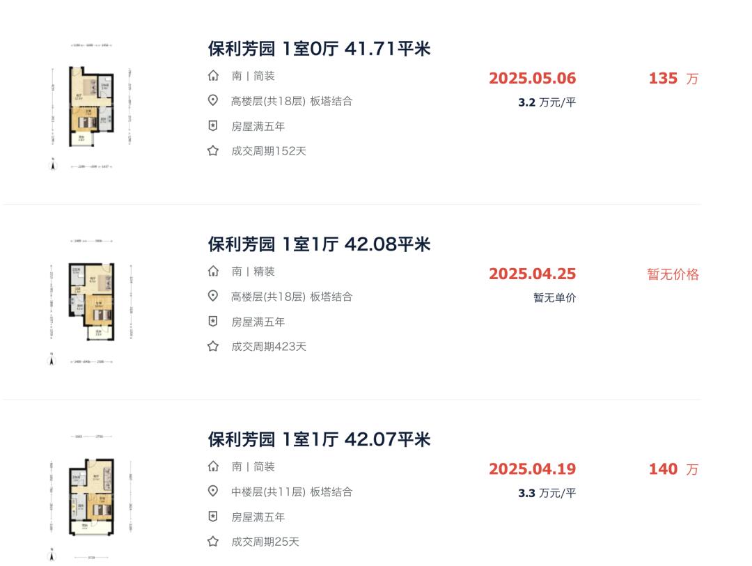 保利芳园,昌平沙河上车楼盘之一,和北街家园部分户型类似性质。 2021年8月,42平高楼层一居室成交价达到了220万,刷新小绿成交史以来最高价。 2025年5月,同户型同类楼层,成交价已降至135万,几乎成为近几年的最低价。 总价跌了将近百分之40,买房是一场豪赌[暗中观察R]
