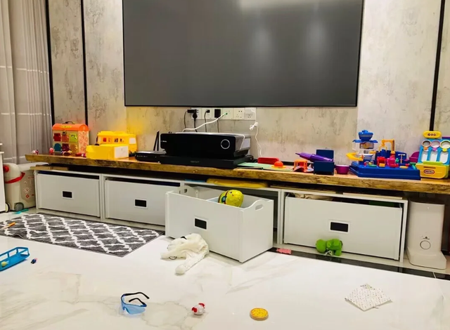 像电视柜可以做成抽屉样式的,可以让孩子的玩具收纳在其中,抽拉式的柜子,孩子一个人也能打开,非常的简单方便,还能养成孩子顺手收纳的好习惯!