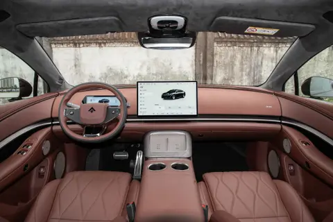 我们坐进车里可以发现使用了一块10.25英寸的小尺寸全液晶仪表屏,还有14.6英寸的中控大屏以及抬头显示屏幕,共同构建了这台车的科技氛围;在中控屏幕的边缘使用了微小的弧度,从而减少了视觉上的黑边框以及突兀感;中控台以及门板上的皮质均采用麂皮,再搭配上金属饰条,能够凸显出车子内饰的豪华性,整车有着64色可调节氛围灯,氛围灯可以自行调节,也可以根据车内音乐律动或者驾驶模式进行切换,除此之外还有着一个香氛分配器,车主可以根据自身的需求来选择不同香型。在车内乘坐舒适度上也有着较高的标准,全车采用了nappa真皮包裹,座椅的侧面和坐垫都采用了菱格型缝线工艺,不仅能够增强透气性,而且也能够让座椅的通风加热更好发挥作用;而后排的乘坐舒适度虽然略逊于前排,但是较长的坐垫能够给大腿带来更好的承托性,同时后排地台几乎纯平,也能够让后排中间的乘客在长途乘坐时更加舒适,不过后排中间座位并不适合个子太高的人乘坐,否则比较容易摩擦到头皮。
