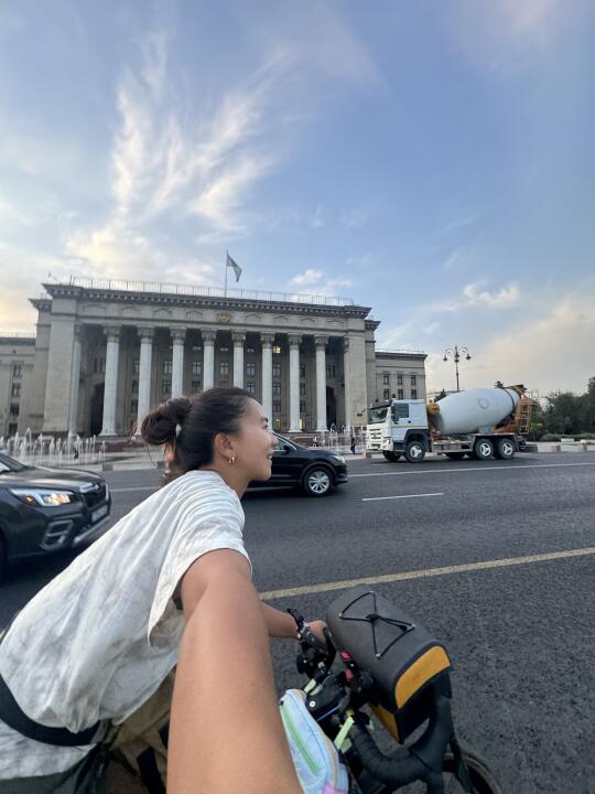 现在我在哈萨克斯坦奇姆肯特,明天准备骑行到乌兹别克斯坦塔什干了。 现在这里的气温接近40度,从清凉的北疆来到沙漠,骑行慢慢成为了酷刑🥵 但是,不论环境多艰苦,它都是我觉得最有体验感的一种旅行方式。 对了,明天傍晚在我的直播间一起来聊聊天吧! 我将边骑车边开始第一场直播!