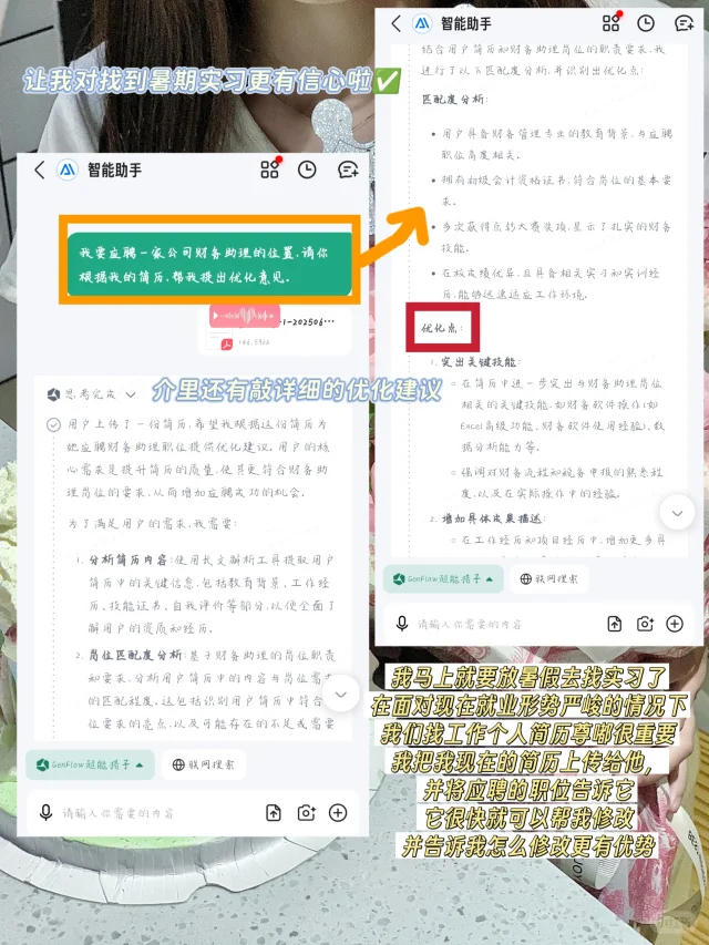 ✅AI简历:简历优化,马上暑期了就要准备出去找暑期实习了,作为小白真的不懂自己的简历哪里可以修改,怎么助自己在面对众多的求职者当中脱颖而出,百度文库的AI简历skill可以很快滴整理我求职岗位的优势,结合我上传↑的简历提炼我的优势,提升与岗位的匹配度,对我们这种求职小白真滴太友好啦!!被HR选中的概率大大提升惹!
