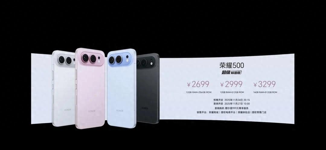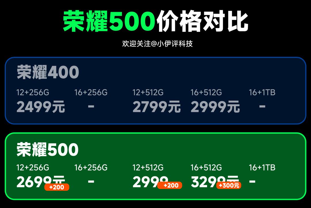 荣耀500系列已经正式公布,分别为2699元和3599元起起,和我昨天的预测是一模一样的,各版本价格如下所示,