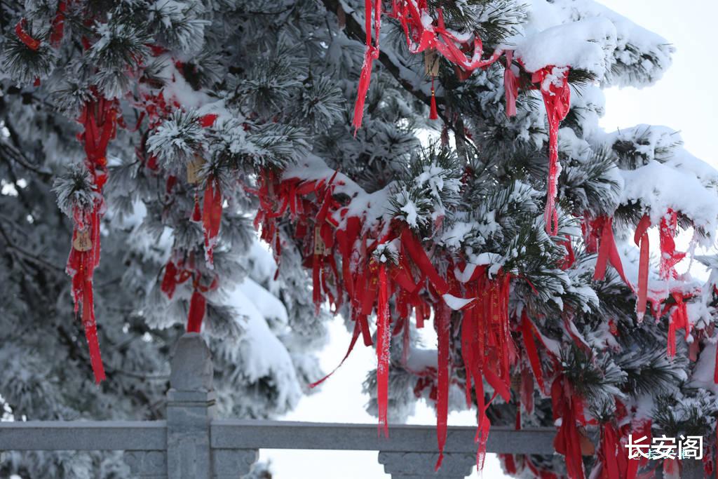 沿着登山步道往上走,途经始建于唐代的圣寿寺,红墙在白雪映衬下红得更艳,寺内千年古槐虽枝桠光秃,却透着历经岁月的苍劲,相传唐代高僧玄奘曾在此停留讲经,如今雪落古槐枝,仿佛还能听见当年的诵经声。