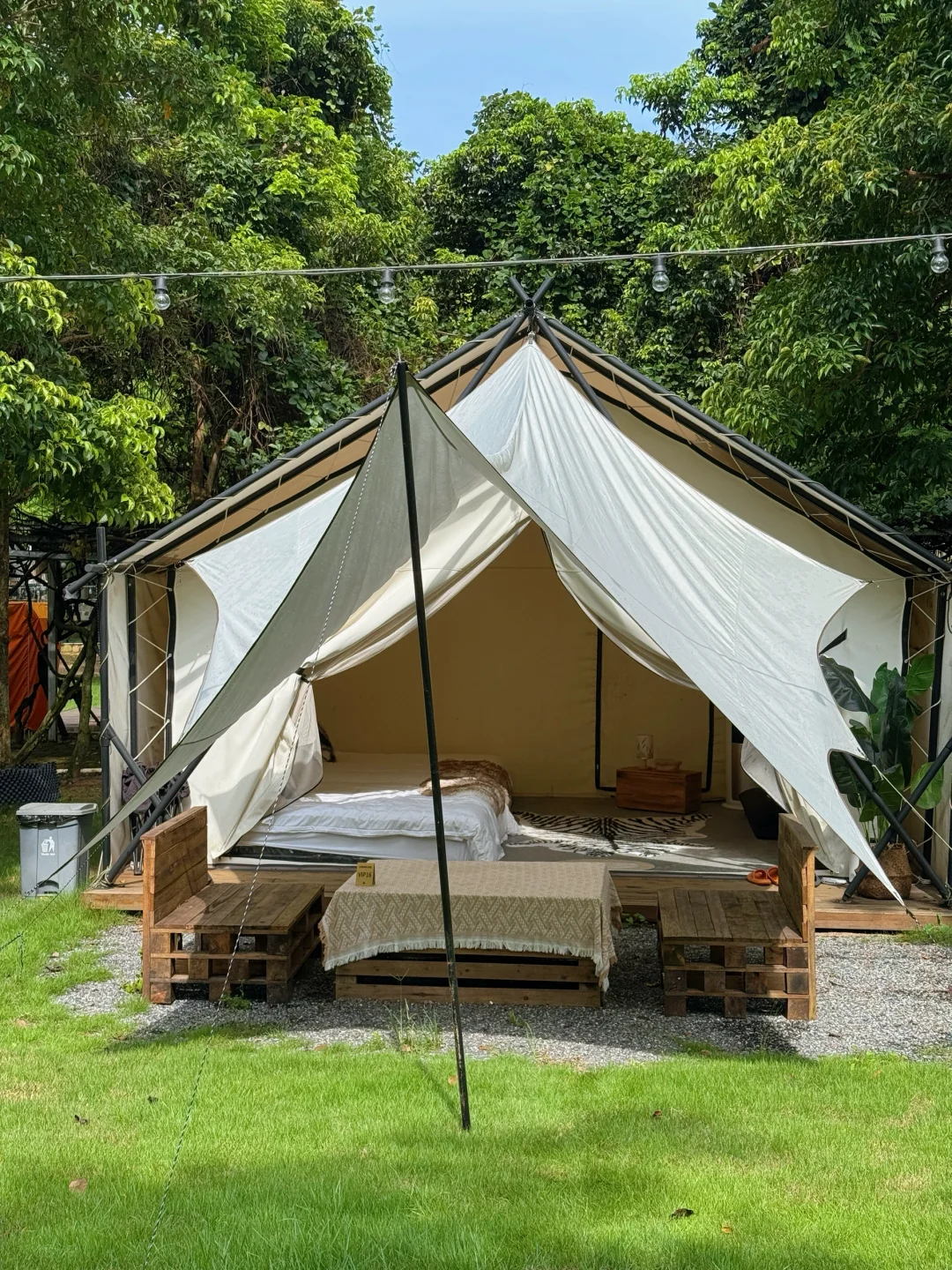 帐篷外就是天幕和桌子,拍照出片游玩也方便