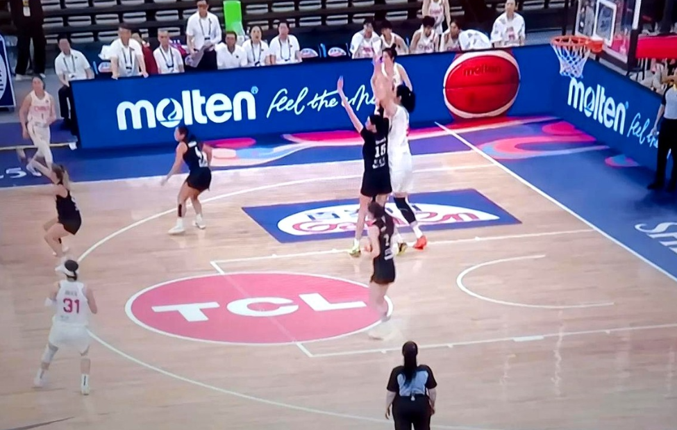 中国女篮对新西女篮的比赛中,一节结束,中国女篮25:10领先新西兰女篮。