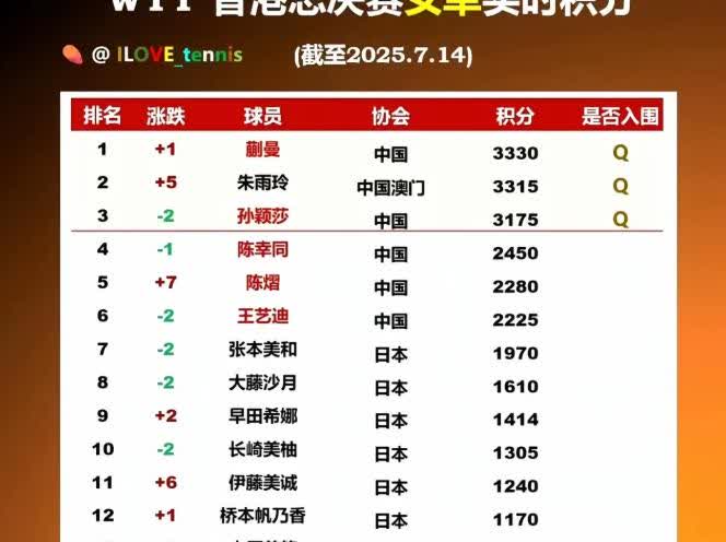 WTT奇葩算分,把孙颖莎排到世界第3了! 更惨的是王曼昱,排名倒数第1。 12月份的WTT香港总决赛, 入选名单是综合了2025年参加WTT的总成绩, 包括大满贯,冠军赛,挑战赛,常规赛。 但是不含三大赛。 这样来算, 蒯曼就成了世界第1, 刚刚拿到美国大满贯的朱雨玲成了第2。 孙颖莎排在第3。 单打名额是前16名, 王曼昱正好排在16名, 差点就失去参赛资格。