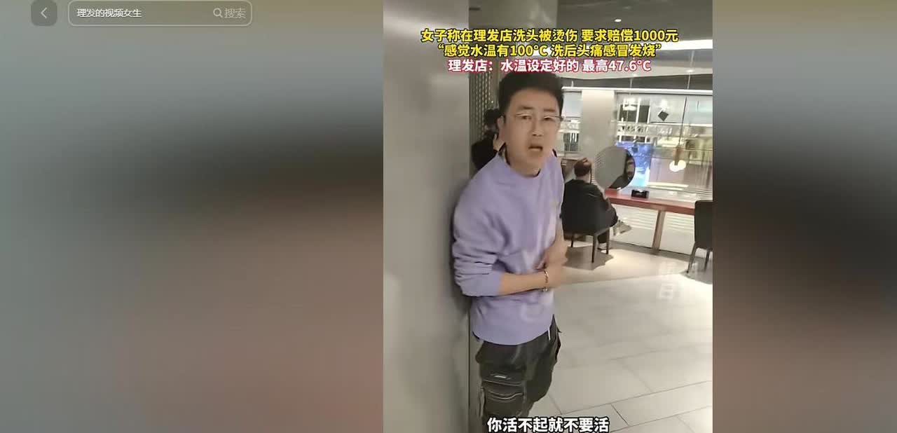 1月11日,女子自称洗头被烫伤,她说:“我觉得那个水都得有100度了。”向店家索赔1000元,没想到店家却说她:“活不起就不要活!” 1月11号,杭州有个姑娘去理发店做了个40块钱的洗剪吹。洗头那会儿,她觉得水太烫了,一个劲儿地让店员调凉点儿,最后还让直接用冷水冲。洗完头离开后,她觉得头皮疼得要命,还发起了烧。跑医院一查,也没啥明显的烫伤。但她就是觉得理发店的热水有问题,找了记者来帮忙,想要店家赔1000块钱。 理发店老板呢,说他们的水温最高也就47.6度,还当场给记者试了试,记者也觉得没啥不对劲。可这位姑娘就是不松口,老板一急眼,就说出了“要觉得活不下去就别活了”这种气话。这事儿一下子就闹大了。最后,两边都没谈拢赔偿的事,各说各的理,矛盾还是没能解决。