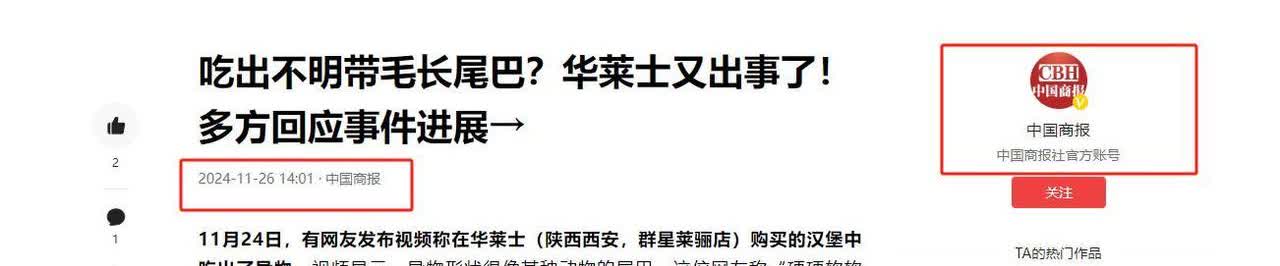 太吓人了!2024年,西安,一女子在华莱士买了个汉堡,咬了一口没咬动,口感也不对劲,女子仔细一看,竟然是一个不明物体,上面有毛孔,看起来像极了尾巴,店家:是速冻品,还在等待化验结果。 2024年,有个西安姑娘在华莱士买了个汉堡吃,结果吃出了大问题,这事儿让大家都开始关心起食品安全来。 这姑娘平时就爱去华莱士,因为那儿的东西不贵,味道也还行,解决一餐挺方便的。但这次她一口咬下去,就觉得不对劲,汉堡里硬邦邦的,还有股怪味。她赶紧停下来,把汉堡掰开一看,妈呀,里面竟然有个不知道是啥的东西,看着像根带毛的尾巴。姑娘当时就想吐,赶紧拍了照,找店家要十倍赔偿,算下来就是300块钱。 可店家呢,一点都不着急,说汉堡里的材料都是冷冻的,跟他们店没关系,得等化验结果。说白了,就是想把责任推到供应商头上,自己啥责任都不想担。姑娘觉得特别委屈,这事儿上了网以后,一下子就火了,“汉堡尾巴”都成了大家担心食品安全的代名词。这事儿不是头一遭了。最近几年,吃的东西里老发现奇怪的东西,可消费者想维权却特别不容易。速冻食品管理上有漏洞,企业也不把食品安全当回事儿,维权的步骤还特别麻烦,这些问题都暴露出来了。 现在,这事儿还在查呢,有关部门已经插手了。不过这场闹剧给咱们提了个醒:食品安全,跟咱每个人都息息相关,谁也躲不掉。