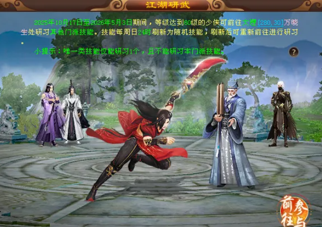 可能有些新手朋友看到"门派无界"这个玩法会觉得有点复杂,其实特别简单。你只要记住这几个要点:到了60级去大理找万晓生就能学习其他门派的技能;每周日会刷新一批技能让你选;标注"唯一"的技能是王牌技能,每周只能二选一;剩下的技能可以再随便选一个。对了,记得不能选自己门派的技能,而且这个玩法只在开服前六个月有,错过就没了。