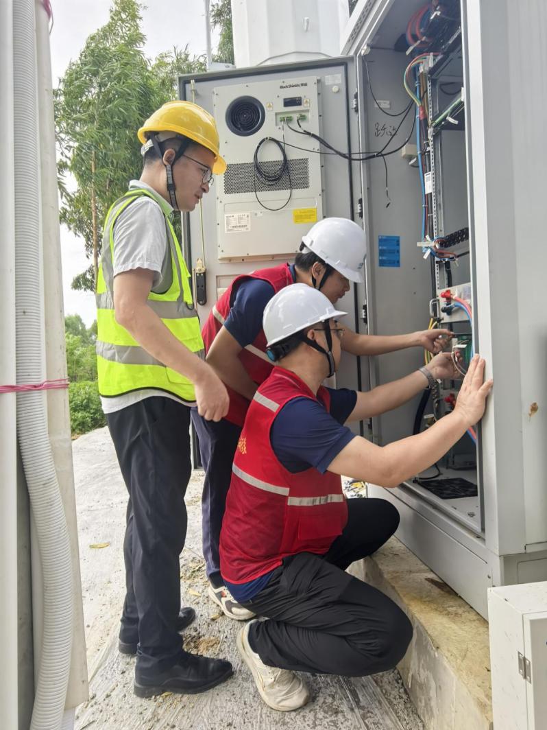 突击队在双孖村进行基站开通前的检查