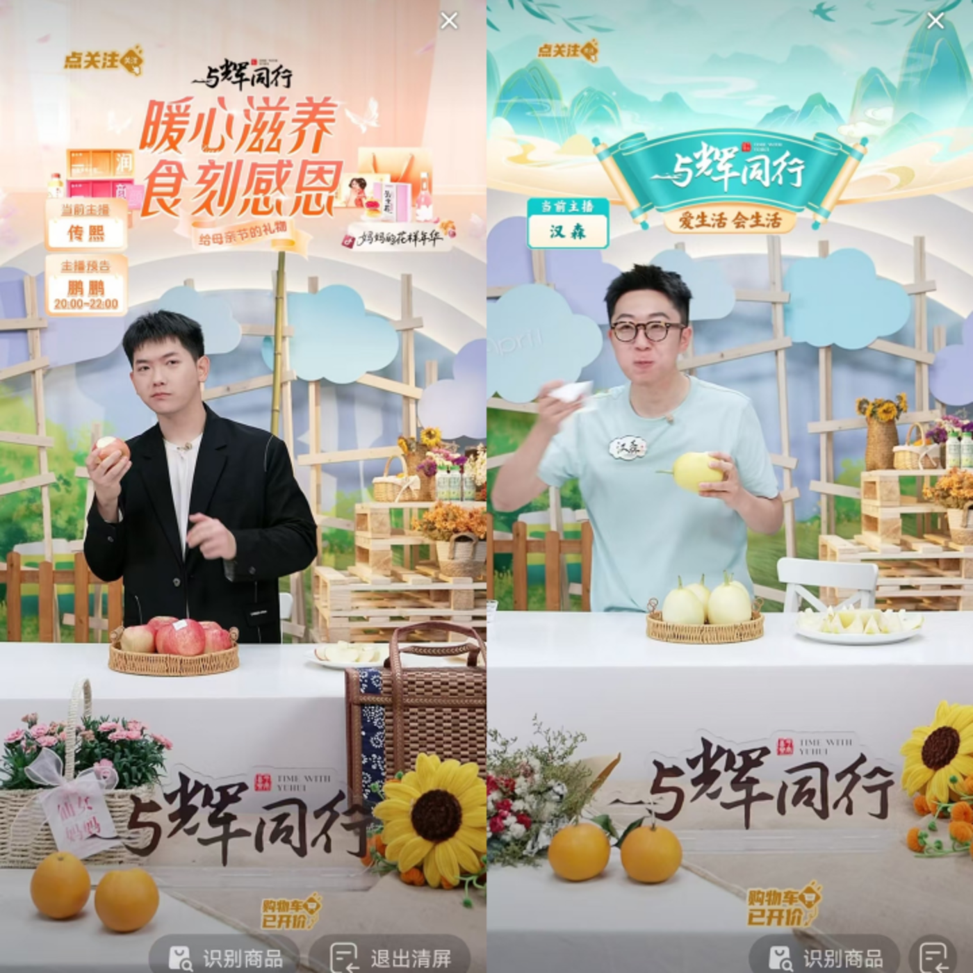 在抖音“与辉同行”的直播间,总会有一只盛放鲜果的精致小篮悄然入镜。