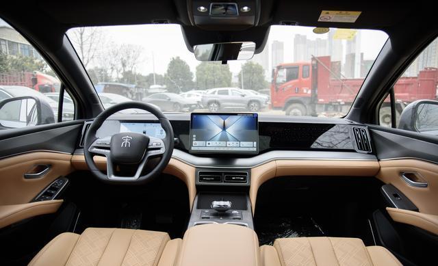 内饰方面,宋L DM-i采用了10.25英寸全液晶仪表与15.6英寸中控屏的组合,简洁而不失科技感。车内配备的自动防眩目内后视镜、空气净化器和前排中央安全气囊等配置,有效提升了行车安全性与舒适性。座椅调节功能丰富,前排座椅头枕调节和后排座椅靠背角度调节,能满足不同身材乘客的坐姿需求。对于注重舒适性的家庭用户来说,这些配置无疑是非常贴心的。