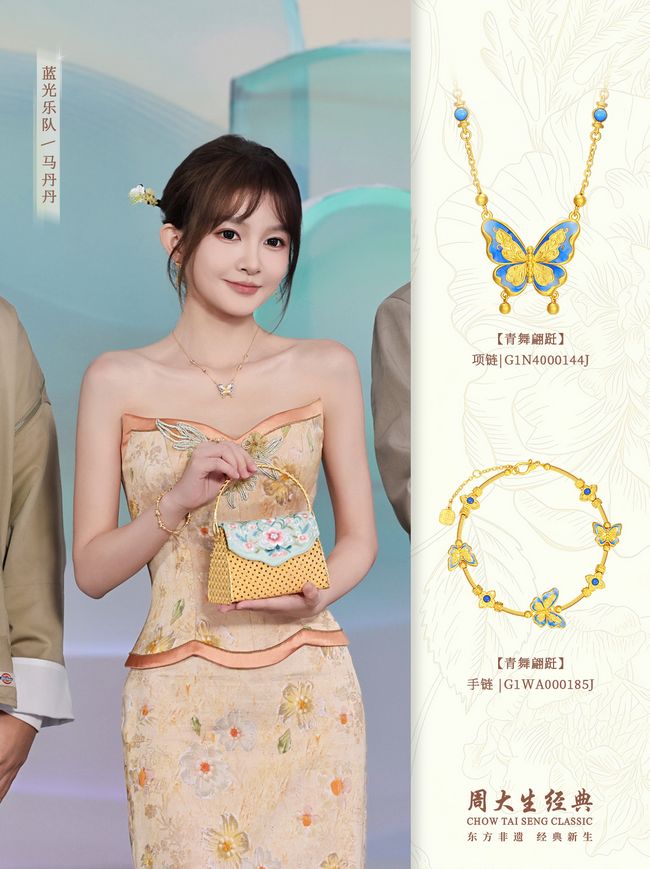 其中,尤为引人注目的是“青舞翩跹”套系。其灵感源自清代康熙年间“五彩蝴蝶纹瓶”,巧妙借用“蝶”与“福”的谐音,传递“福泽绵延、美好常伴”的东方祈愿。套系涵盖项链、戒指、耳饰、手链四大品类,以足金勾勒蝴蝶翩跹之姿,青花珐琅点染蝶翼细节,将灵动蝶影凝于方寸之间,实现古典韵味与现代轻盈的完美平衡。