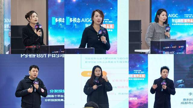 下左 惠利玛副总裁 李文彬 下中 企业大脑AGENT 沈蓓蓓 下右 AI超级编导创始人 缪忠才