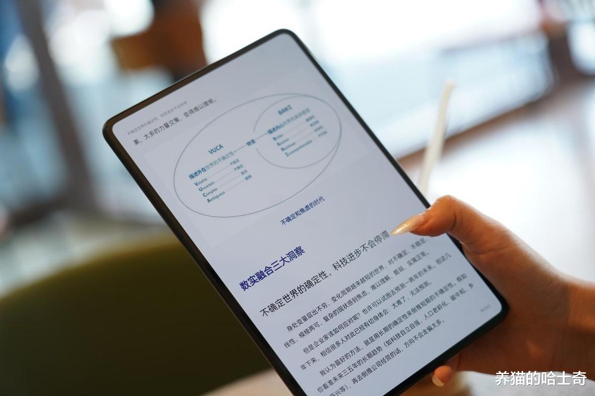 华为MatePad Mini给我的第一个感觉就是“好轻!好薄!好尺寸!”单手轻松拿捏,一点不夸张。