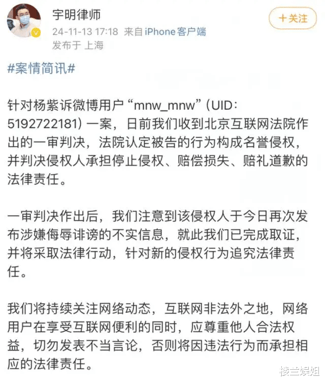 最后,娱姐希望杨紫这次能将维权进行到底,让造谣者受到该有的惩罚,这样才能对那些随嘴乱喷粪的人起到警示作用。