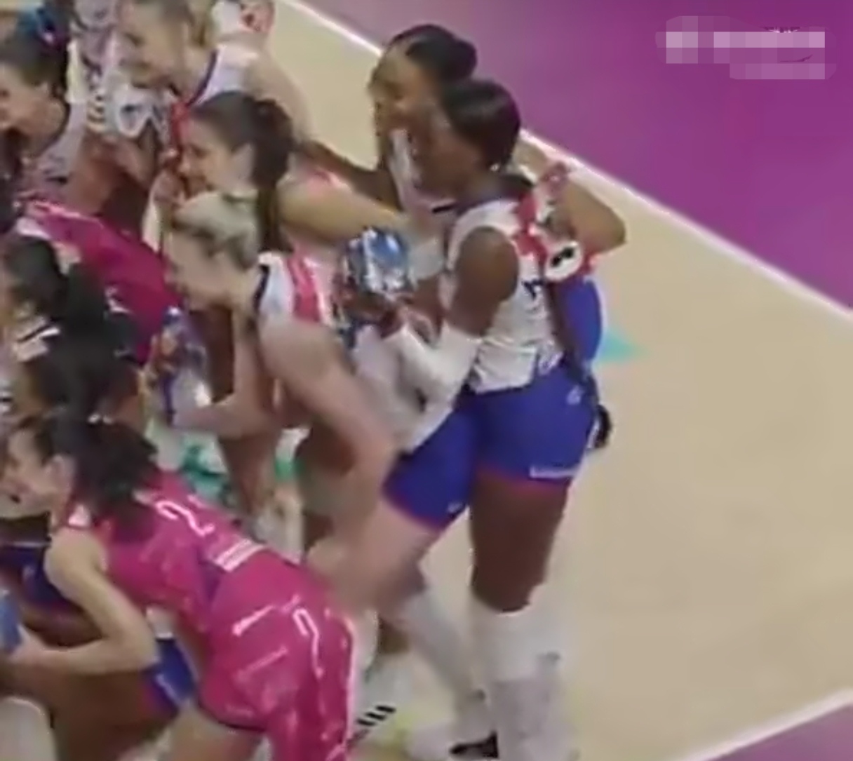 在比赛结束以后,赢球的一方要拍摄大合照,当时艾格努站在后排,她的前面是阿基莫娃,在众目睽睽之下,整个球场的球迷还没有散去,她竟然从阿基莫娃的背后,贴着阿基莫娃的身体,做着泰迪的动作。同时模仿她的还有她旁边的拉尼尔,不得不说这两个黑人球员还是非常的放得开,毕竟这不是更衣室,而且还都是女球员,这样的玩笑实在是有些伤风俗,如果在中国的联赛出现这样的事情,那这位球员也就基本上算是社死了,当然也不可能出现。