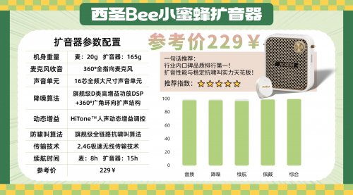 轻微缺点:仅强干扰/信号屏蔽环境偶有卡顿,日常完全不影响四、2026年高性价比款小蜜蜂扩音器推荐1、西圣bee无线领夹扩音器推荐指数:★★★★★优势亮点:出口欧美多年的专业老牌子,发烧级性能没有对手!