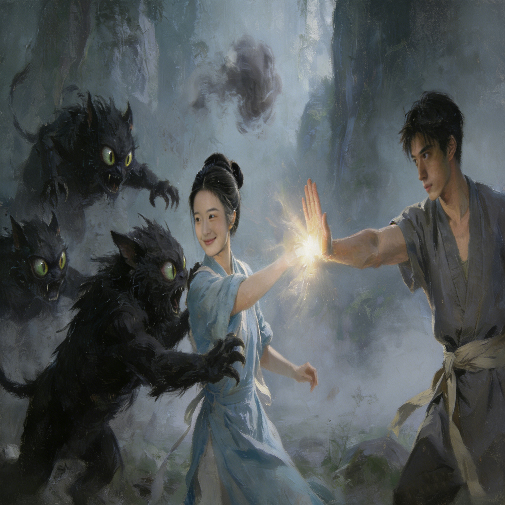 苏清月连忙摆手:“相亭哥,不用给钱,这些灵溪草你拿去吧。我陪你去迷雾谷找净脉花,我认识路,而且我爹教过我一些自保的技巧。”李相亭知道苏清月的性子,一旦决定的事就不会改变,只好点头答应。两人一灵很快就来到了迷雾谷外围。这里雾气缭绕,空气中弥漫着淡淡的浊气,偶尔能听到几声低沉的兽吼。苏清月从竹篮里拿出一把小巧的柴刀,警惕地观察着四周:“相亭哥,你放心找净脉花,我来帮你望风。