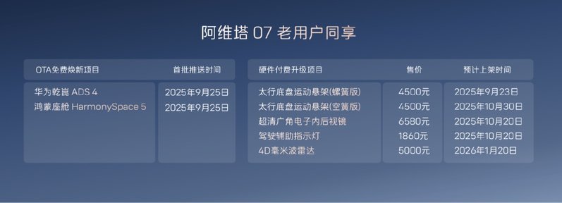 与此同时,针对本次阿维塔07 2026款的上市,阿维塔还推出了重磅购车礼遇。2025年10月31日(含)前大定用户可享7大限时权益:首任车主终身三电质保、10000元定金膨胀礼遇、价值10000元的英国之宝·卓越之声音响系统免费升级、价值10000元宁德时代5C骁遥超级增·混电池(52.01kWh)限时升级礼遇、20000元ADS高阶功能包等额抵扣券、价值4000元的辅助驾驶无忧服务权益、金融购车限时政策。