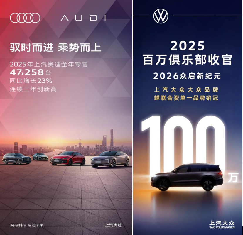 上汽大众的智能化转型已取得显著市场成效。2025年,上汽奥迪全年销量达到47258辆,同比增幅达到23%,远高于呈现跌幅的豪华市场行情和大盘增长率。上汽大众大众品牌燃油车市场占有率在2025年稳中有升,助力上汽大众企业全年销量达到106万辆。