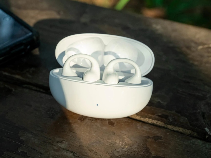 佩戴体验:凭借 C 形桥设计,这款耳机单耳 5.6g 轻盈无负担,内部镍钛记忆合金可自适应耳型,外部亲肤 TPU 材质贴合耳廓,久戴无压迫感,运动时也能稳固不掉。