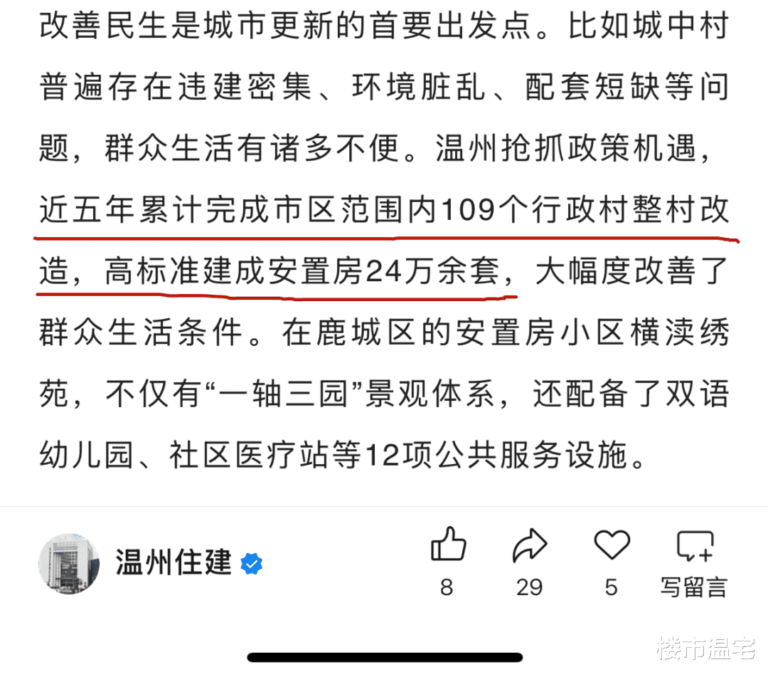 日前,浙江日报潮新闻的报道里,提到了这一组数据,并经温州住建转发确认。