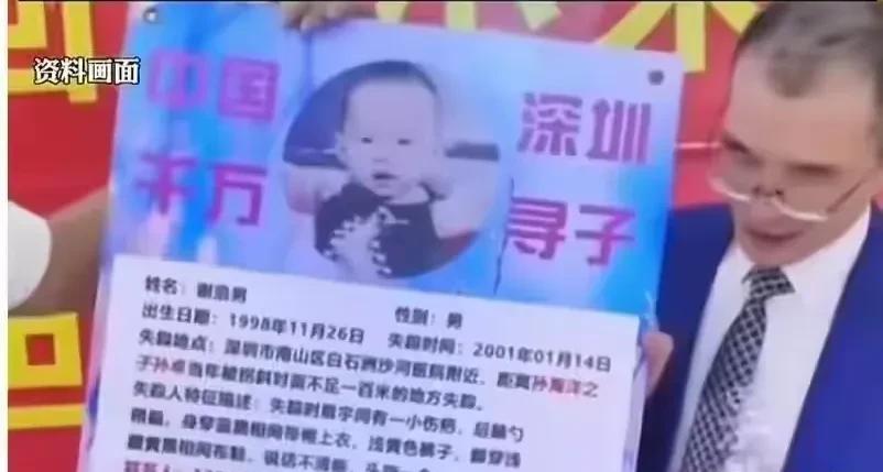 2001年,年仅3岁的谢浩男在深圳被人拐走,从此与家人音讯全无。