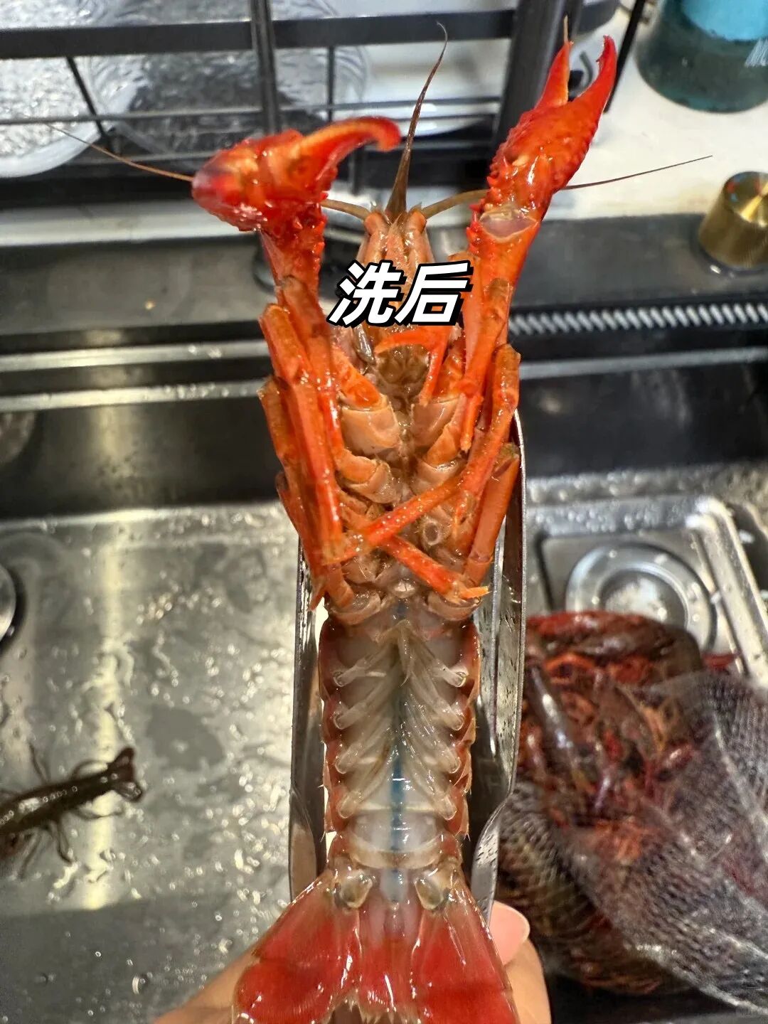 洗完拿出来,龙虾鲜活又干净,直接下锅煮就行,太方便了。