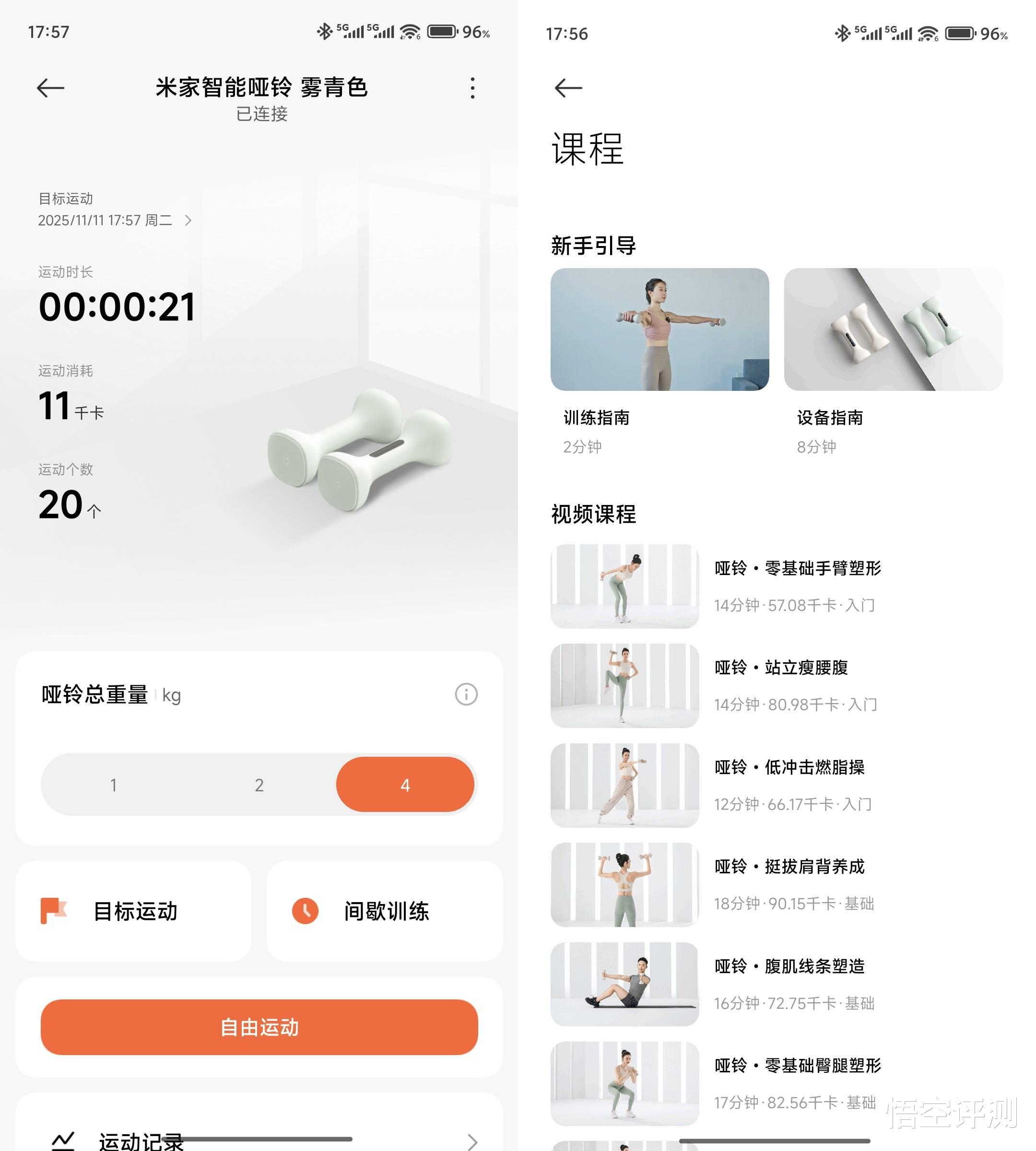 哑铃开机之后,自动接入米家APP,可以让用户沉浸式训练,无需去手动设置。