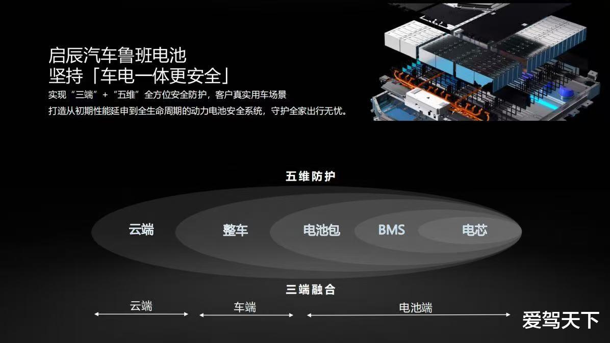 电池安全方面,2026款启辰大V DD-i虎鲸搭载启辰汽车鲁班电池2.0,执行高安全标准和高安全结构,实现车电一体大安全。通过5大高标准安全检验,包括电池整包针刺不起火不爆炸、1.4倍国标耐久振动不散架、1.2倍国标挤压不怕撞、5米高度跌落不爆炸、IPX9K高温高压不惧喷淋,树立了电池安全新标杆;并采用高强度钢蜂窝结构和双独立BLOCK腔体设计,电芯高度集成,提高电池包空间利用率和能量密度,极端情况下,可以延缓及阻隔电芯间的热失控传递,实现整包无热蔓延的超高安全性,确保乘员安全。