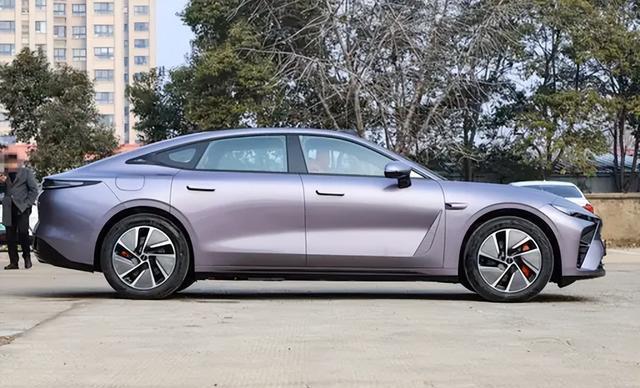 从侧面看,车身线条流畅且富有韵律感。车身的腰线微微上扬,像是一位正在奔跑的运动员,既展现了车辆的运动风格,又提升了空气动力学性能。为了减少空气阻力,低风阻的车顶设计是很用心的。再加上隐藏式门把手和无框车门的设计,美学价值和空气流线的优化都做到了。这就好比一个人在精心打扮自己,每个细节都不放过,只为了展现出最好的自己。这样的设计有效改善了空气流线,进一步优化了车辆的续航表现。