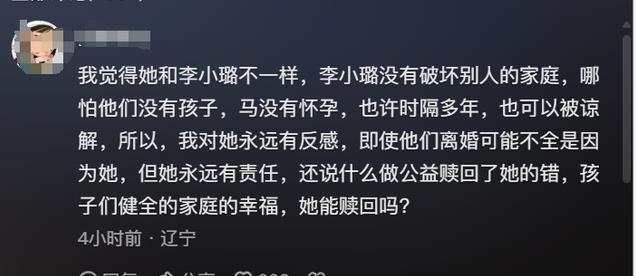 但是她已经是成年人了,应该为自己的错误负责,在明知文章有家庭的时候还选择当小三破坏别人的家庭。也许时隔多年存在的这些问题已经过去,但是他的错误对于一个家庭来说永远是一根刺横在夫妻两人中间,也让孩子失去了一个幸福美满的家庭。