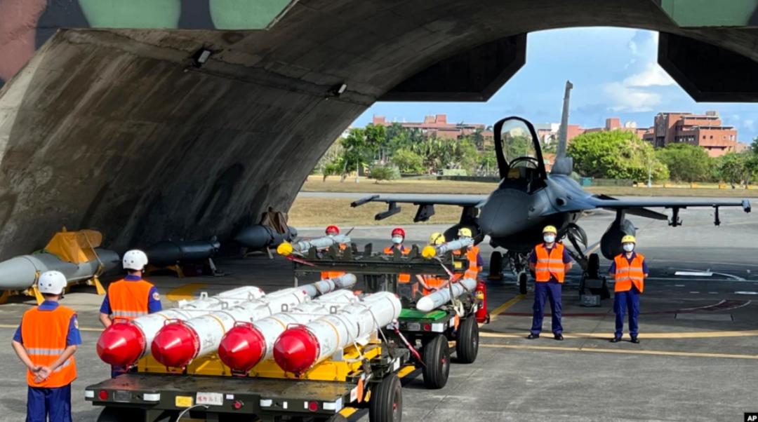 台军士兵准备进行装载美制导弹的训练。(图源:美联社)
