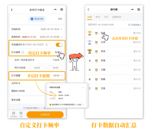 一条接龙可持续收集,打卡情况自动统计,还能自动汇总成排行榜,让长期跟踪与习惯培养变得简单高效。