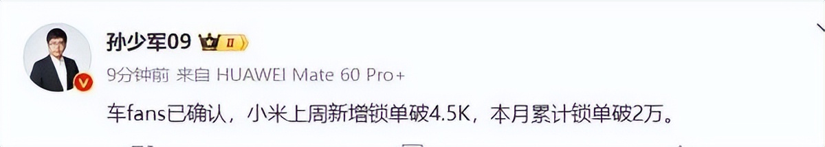 2025年10月末,车fans创始人孙少军透露,“小米汽车上周(10月21日-10月27日)新增锁单破4.5K,本月累计锁单破2万。”横向对比不难发现,目前小米汽车的月锁单量已经远低于交付量。