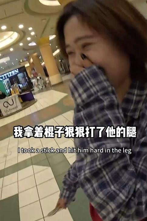 苏菲拿起自拍杆,先是把那几个女眷和孩子打得落花流水,一旁的同伴也没闲着,一下就把那老头推进了购物车,场面相当滑稽。